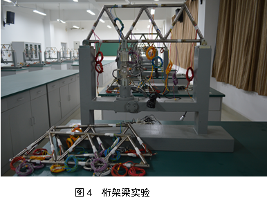 本实验室可以开设8h理论力学、材料力学和结构力学综合实验,其中桁架的受力分析涉及理论力学与结构力学课程,内力的测量则通过材料力学电测方法。通过桁架连接方式、可调加载和支撑位置实现实验内容的多样性。