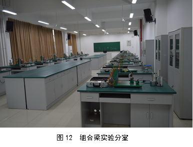 7)组合梁实验分室(综合二号实验楼212室):主要设备包括材料力学组合梁实验装置1、2和20点静态应变仪各18套。