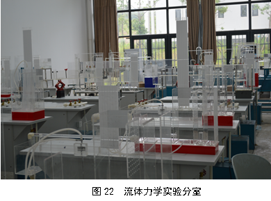 5)流体力学实验分室(工程实践教学中心110室):实验室总建筑面积120m2。主要设备包括:自循环毕托管测速实验仪、流体静力学综合实验仪各6台,自循环文丘里实验仪、自循环孔口管嘴综合实验仪、自循环沿成阻力综合实验仪各3台,自循环活动水槽实验仪2台,自循环水击综合实验仪、自循环虹吸原理实验仪、自循环空化机理仪、自循环紊动机理仪、自循环静压传递扬水仪、自循环流动演示仪各1台,设备总资产16.1万元。