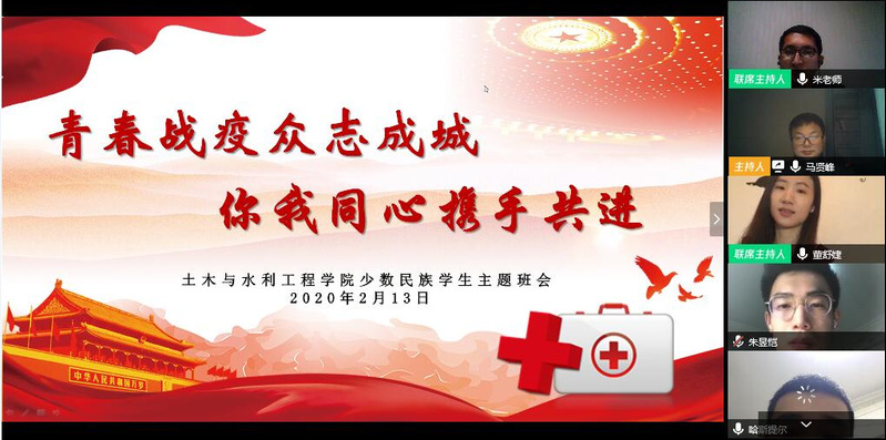 2月13日,学院利用腾讯会议网络平台召开了少数民族学生“青春战疫众志成城,你我同心携手共进”主题班会,2018级辅导员米尔扎提江老师领学了《坚决防止疫情向校园蔓延,确保师生生命安全》《关于做好2019-2020年度第二学期本科生线上教学工作的通知》等学校疫情防控工作的工作部署和要求,系统回答了同学们提出的关于延迟开学、线上教学、第二课堂活动等问题,教育引导同学们要同心协力,积极参与到疫情防控工作;合理规划时间,养成良好的假期学习生活习惯;遵守防控规定,主动配合当地政府的疫情防控工作;调整心态,勇于克服学习生活中遇到的困难;明辨是非,不信谣、不传谣、不造谣,营造风清气正、向上向善的网络环境。