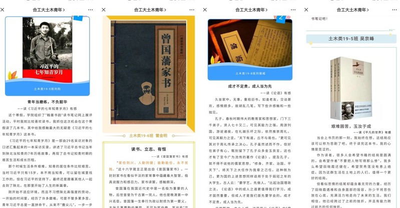 读经史典籍,追寻立德之本。夫以铜为镜,可以正衣冠,以史为镜,可以知兴替,以人为镜,可以明得失。阅读经史典籍,可以帮助青年学子探寻立德之本,树立正确的世界观、人生观和价值观。土木类19-8班的刘振威从《论语》中悟出做人的真谛。他从“广学甄微,才大心细”“仁之实,事亲是也”“为人谦和,洁身自好”等几个方面,阐述了作为当代大学生应具备的品质,努力掌握丰厚的文化知识,学习圆滑的处世之道,拥有一颗孝亲敬长的敬畏之心,德才兼备,才能以年轻的风采,昂扬的本色,为祖国贡献青春力量。给排水科学与工程17-2班张冬阳分别从《史记》《留侯世家》《项羽本纪》《秦本纪》《秦始皇本纪》中读出了中华民族的伟大创造精神、伟大奋斗精神、伟大团结精神和伟大梦想精神。疫情当下,他从历史中看到了今日之武汉、当下之中国,正在用凝聚着创造、奋斗、团结、梦想精神的“华夏之勇”与疫情抗争。