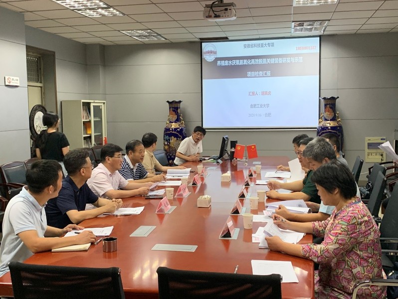 承担的安徽省科技重大专项“养殖废水厌氧氨氧化高效脱氮关键装备研发与示范项目”(项目编号:18030801102)进行检查和指导。安徽省科技厅周浩副处长、许正峰副处长、省内相关专家,合肥工业大学科研院副院长解挺、自然办赵锐主任,皇耀娱乐官网