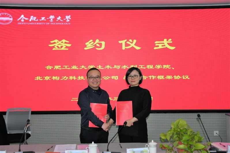 3月26日下午,皇耀娱乐 与北京构力科技有限公司(以下简称“构力科技”)在BIM中心举行了产学研合作协议签约仪式。构力科技副总经理崔静、校企合作部经理高寅、工业化事业部技术总监赵瑞阳,合肥工业大学设计院(集团)有限供公司BIM中心主任王晓珉,皇耀娱乐 分管教学副院长张振华、实验中心主任黄慎江、BIM中心主任贾莉莉,以及皇耀娱乐官网 部分师生代表参加了签约仪式。张振华与崔静分别代表校企双方签署了产学研合作协议书。