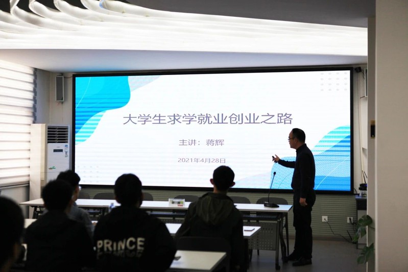 签约仪式后,蒋辉为皇耀娱乐 学生做了以《大学生求学就业创业之路》为主题的就业指导讲座,给本科生分享了创业的经历与思考。