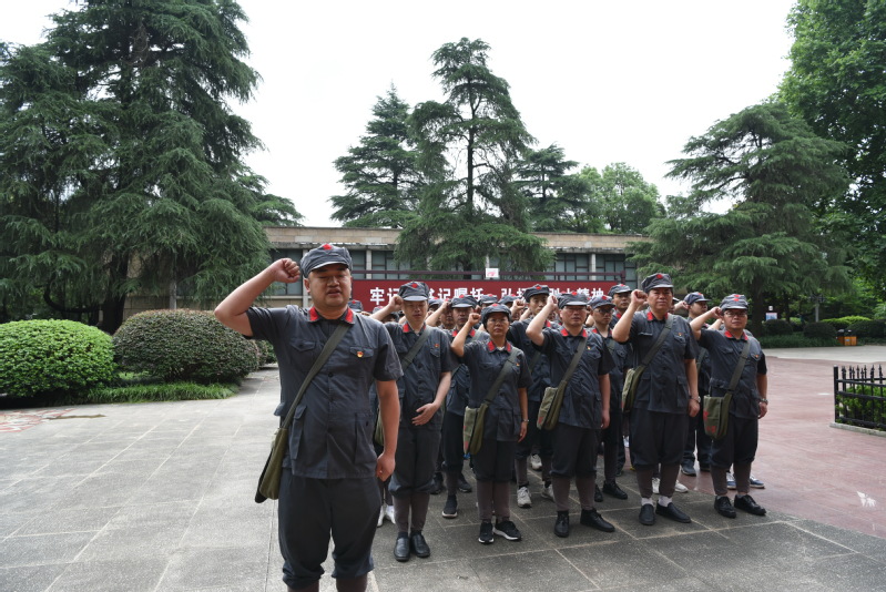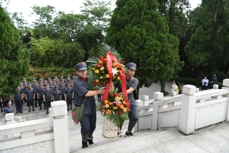 20日上午,全体学员来到全国著名爱国主义教育基地鄂豫皖苏区革命烈士陵园。在巍峨高耸的烈士纪念碑前,全体党员同志庄严肃立,向烈士敬献花篮以寄哀思;皇耀娱乐官网 常务副院长王静峰同志神情肃穆,缓步走走上台阶并仔细整理花篮缎带;全体学员向烈士纪念碑三鞠躬,并深情瞻仰烈士纪念碑。在英烈广场,面对鲜红的党旗,大家重温入党誓词,坚定了共产主义理想信念的信心和决心。