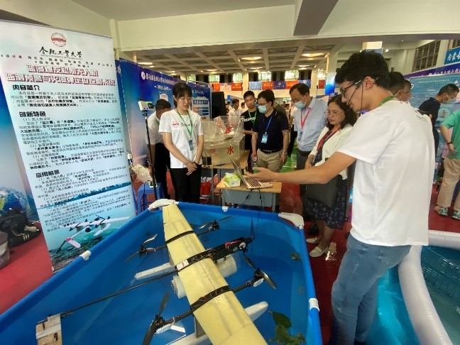 经过现场作品演示以及参赛队员答辩,我校学子展现出了良好的精神面貌和专业素养,获得了评委专家和兄弟院校参赛师生的好评。其中由刘广、杨帆老师指导,陶乐乐、姚卓杭、张启、张津、王万羽同学设计的《蓝藻爆发初期无人机监测预警与灭藻弹定位投射系统》获特等奖;由张瑞钢、景月岭老师指导,廖翊杰、孟盛、邱梓涵、彭湃、齐晟慰设计的《协同式智能清漂子母船》获一等奖;由王艳巧、张瑞钢老师指导,程旭、汪子询、许冬宇、罗盛、李飞设计的《中小型水库智慧“健康管家”》获二等奖。