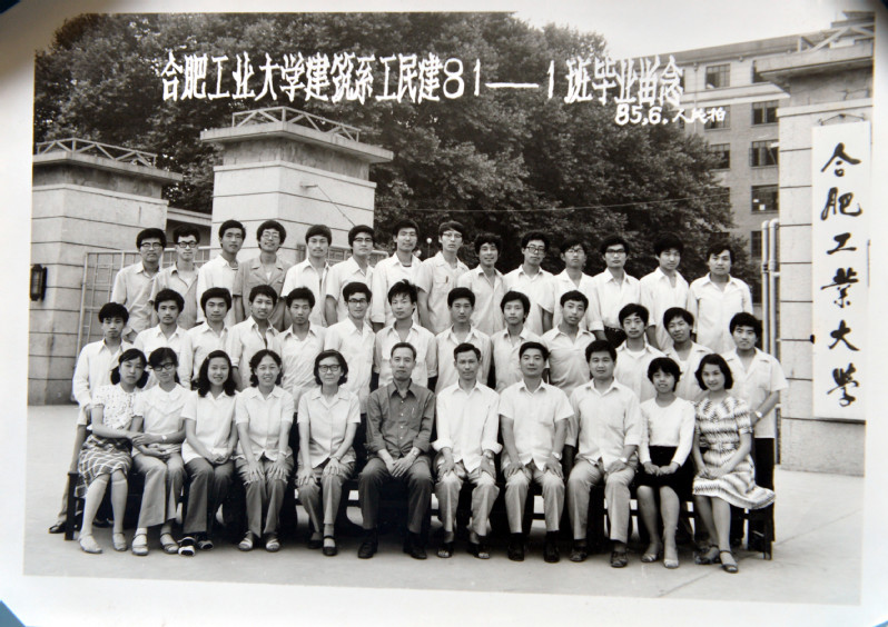 合肥工业大学建筑系工民建81-1班毕业留念,1985.6