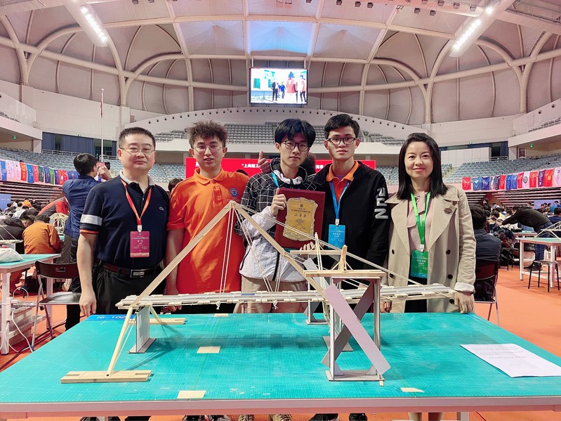 本届竞赛上海交通大学承办,清华大学、同济大学、浙江大学、东南大学、上海交通大学等111所国内知名高校共派出了112支参赛队伍。皇耀娱乐官网 高度重视和认真组织,在荣获“第十四届全国大学生结构设计竞赛分区(安徽)暨第四届安徽省大学生结构设计竞赛”2个一等奖和1个二等奖共三支队伍9名成员中,选拨了3名队员组成一支代表队参加比赛,并由王辉、宋满荣和陈安英等教师组成了指导组。