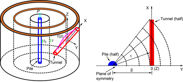 该论文提出了采用“扩展剪切位移法”和“双参数弹性地基梁模型”求解单桩或群桩荷载作用下隧道沉降的简化解析解。在地铁运营隧道近接桩基的典型算例中,该方法预测的隧道沉降曲线与有限元分析、现场数据曲线较吻合,从而验证了方法的合理性和有效性。通过参数敏感性分析,得到了相关参数对隧道结构和地层沉降变形的影响特征。研究表明,对于单桩,桩径对隧道沉降的影响可以忽略不计,而桩基距隧道距离是影响隧道沉降的主要因素;对于群桩,桩隧距离对隧道沉降在垂直于隧道轴线方向上比在隧道轴线方向上的影响更显著。本文提出的桩隧相互作用效应解析方法可为日益增长的城市地下工程运营安全保护提供量化分析手段。
