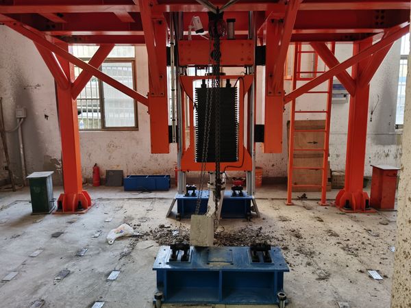 超高重型落锤试验机竣工后,进行了钢筋混凝土简支梁的冲击试验,用于设备验收。试验完成落锤起升,报警,下落冲击过程,达到预期效果。