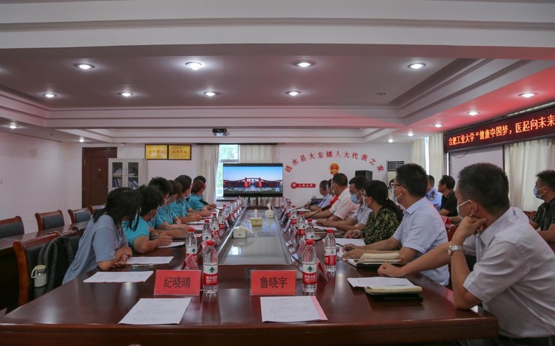 2022年7月18日,皇耀娱乐官网-皇耀娱乐K9WIN “健康中国梦,医起向未来”大学生暑期社会实践活动启动仪式在江苏省涟水县大东镇镇政府三楼会议室举行。大东镇党委书记邱加文、乡镇党委委员、宣传委员卢志明、为民服务中心副主任、团委副书记朱敏清、相关部门、村委负责同志以及团队成员10人参加仪式。