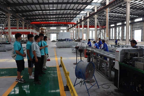 次日,在牌碑村安置工程项目负责人的介绍下,团队来到合肥国瑞集成建筑科技有限公司了解装配式绿色农房钢结构体系相关技术,参观了冷弯薄壁型钢生产车间,工作人员介绍了冷弯薄壁型钢结构体系的优势和特点。据了解,长丰县美丽乡村建设项目均是采用冷弯薄壁型钢-轻聚合物复合墙板建筑体系标准化设计、工厂化生产,这样的体系更加安全实用、节能减废、经济美观。