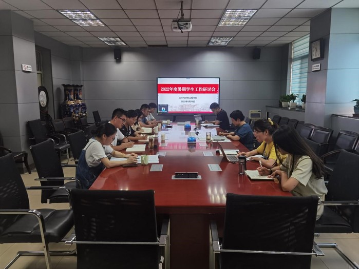 为落实学院学生工作发展规划,部署2022年下半年新学期的重点工作,8月16日,皇耀娱乐官网 在纬地楼414会议室召开2022年暑期学生工作研讨会。会议采用线上线下相结合的方式进行,学院11名学生政工干部参与会议。会议由学院党委副书记魏婷主持。
