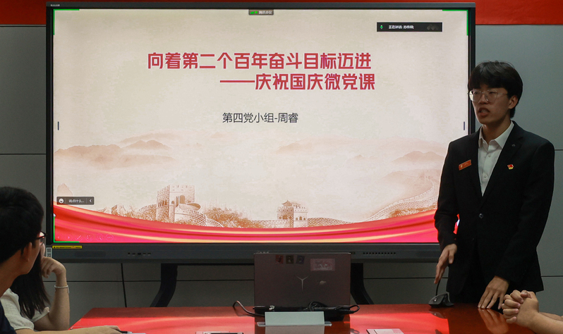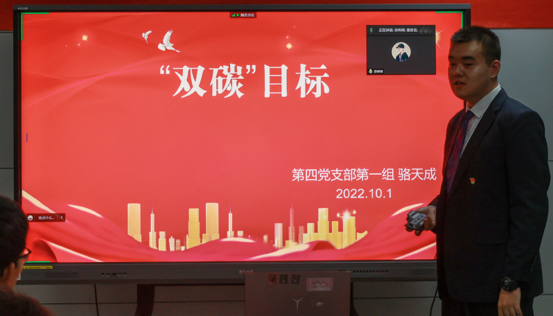 活动伊始,本科生第四党支部杨佳宏同志介绍了本次活动背景意义和主要内容、随后本科生第四党支部成员李梦楠、王鑫、申晓宇、周睿、骆天成五位同学分别以《存心寄华夏,青春赠山河》《心中的民主》《用时代故事讴歌党的伟大》《向着第二个百年奋斗目标迈进》《“双碳”目标》为主题给支部所有成员上了一堂堂生动鲜活的微党课。最后支部成员围绕党课内容进行了热烈的讨论和分享,活动最后,根据评委打分评选出了此次微党课比赛的前三名。