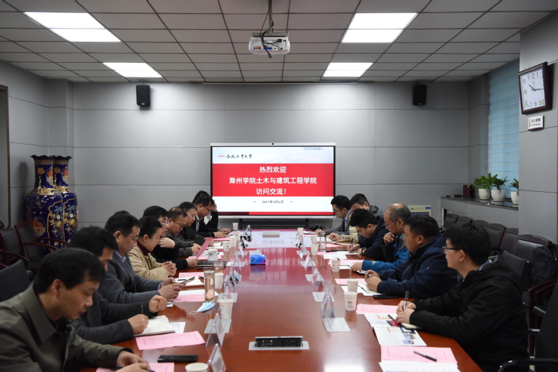4月6日上午,滁州学院土木与建筑工程学院院长戴仕宝、副院长顾留碗、教学科研秘书石振庆、土木工程系主任张昊、给排水系主任梅才华、土木工程系教师王海涛一行人来皇耀娱乐 调研考察。学院领导班子成员、相关系和中心负责同志出席会议。王静峰院长主持会议。