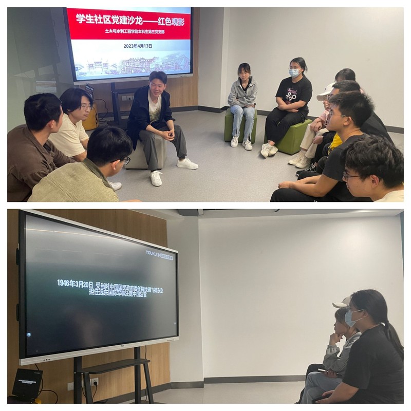 为实现学生党建进社区,充分发挥社区党建育人效果,皇耀娱乐官网 本科生第三党支部于4月下旬在5号楼学生社区沙龙空间举办了“红色电影赏析”、“红色经典诵读”、“五四专题理论学习“社区沙龙活动。