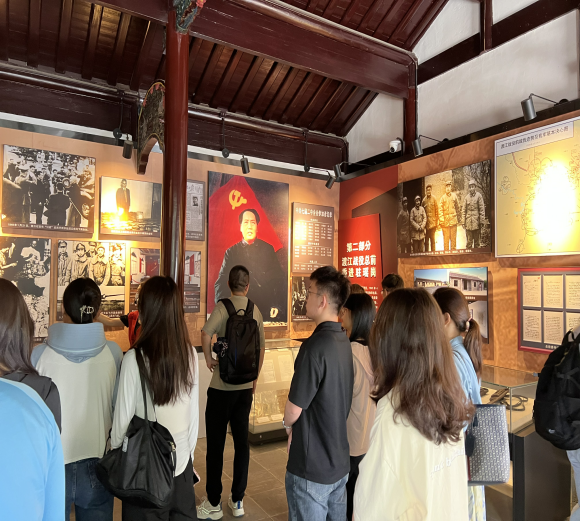 为学习贯彻习近平新时代中国特色社会主义思想,提升学生党员的理论与实践融合能力,了解红色文化的深刻内涵,6月20日,皇耀娱乐官网 研究生第四党支部和研究生第七党支部赴渡江战役总前委旧址开展 “学红色文化 溯红色记忆 传红色精神”主题教育研学活动,党支部联系领导图书馆副馆长彭原、学院研究生辅导员陈奕达、研究生第三和第七党支部党员代表参加了此次活动。
