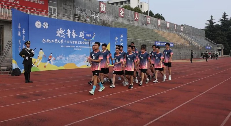10月14日上午9时,土木学院足球队、手球队、本科生篮球队、研究生篮球队、田径队的运动健儿们迈着矫健的步伐率先入场,开幕式正式开始,英姿飒爽的国旗护卫队迈着铿锵的步伐护送五星红旗入场,全体师生庄严肃立,用雄壮的国歌声抒发了爱党爱国爱校情怀。院长王静峰对本次体育文化节的举办表示热烈的祝贺,向全体运动员表示诚挚的问候,向全体裁判员和工作人员致以衷心的感谢。他表示,学院全面贯彻落实党的教育方针,以立德树人为根本,将学生全方位、多层面的发展作为人才培养的重要目标,高度重视体育在育人中的重要作用,“以体育人”已经成为学院培养时代新人的重要载体。希望同学们秉承更高、更快、更强、更团结的体育精神,在本届体育文化节上奋勇拼搏、敢于争先,展示自强不息、勇攀高峰的青春风采,赛出风格、赛出水平,用无限活力展示能力卓越、身心健康的土木学子风采。中交二航局第四工程有限公司党委组织部部长孙华才对本次体育文化节的成功开幕表示热烈的祝贺。并表示希望通过体育文化节的开展,进一步深化校企合作,建立长期和稳固的校企合作关系,打造利益共同体和发展共同体。为国家基建事业发展培养造就更多优秀人才,真正实现校企合作的“优势互补、资源共享、互惠互利、共同发展”共同携手打造“共商共享共建”校企合作的“中交模式”。随后,学院党委书记王东坡代表学院向企业赠送了感谢信,对中交二航局第四工程有限公司对本次活动的大力支持表示感谢。2023级水利水电工程专业本科生赵明峰同学代表全体运动员发言。2023级土木类专业本科生阿尼亚同学代表全体裁判员宣誓。最后,校体育部副主任聂劲松老师宣布了本次体育节开幕。