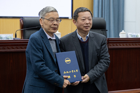李杰院士对于我校的聘请表示衷心感谢。他深情回顾了自己与合肥工业大学的历史渊源。李杰院士表示,将尽己所能为学校土木工程学科建设与青年人才培养做出应有的贡献。