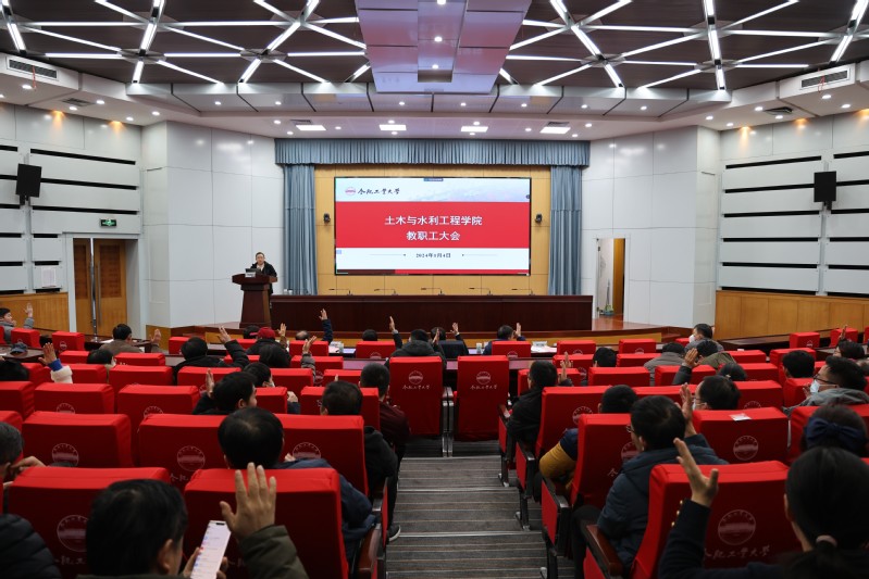 1月4日,皇耀娱乐 在学术会议中心一楼大报告厅召开教职工大会。学院领导班子、全体教职工出席会议。王静峰院长主持会议。