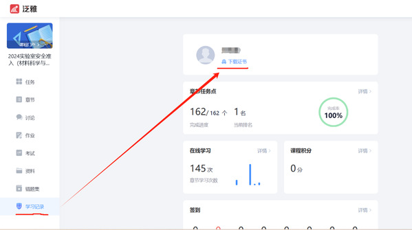 | 从学习记录下载证书 |