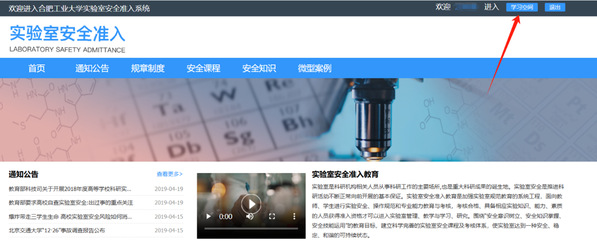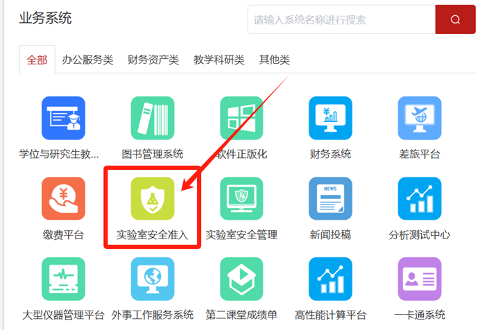 | 从信息门户进入实验室安全准入模块 |