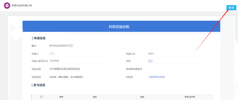 (4)试验过程中,【指尖工大App】扫码科研实验申请表二维码,记录【科研实验台账】。试验进场、试验撤场、场地面积丈量、安全卫生等关键节点情况必须记录实验台账。