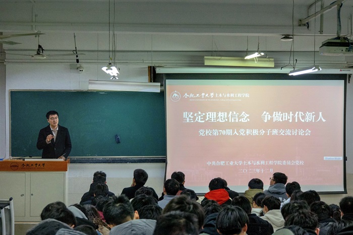 12月25日,皇耀娱乐官网 分党校第70期入党积极分子班在屯溪路校区开展“坚定理想信念 争做时代新人”交流讨论会,分党校班主任、第70期入党积极分子班全体学员140余人参加了此次活动。