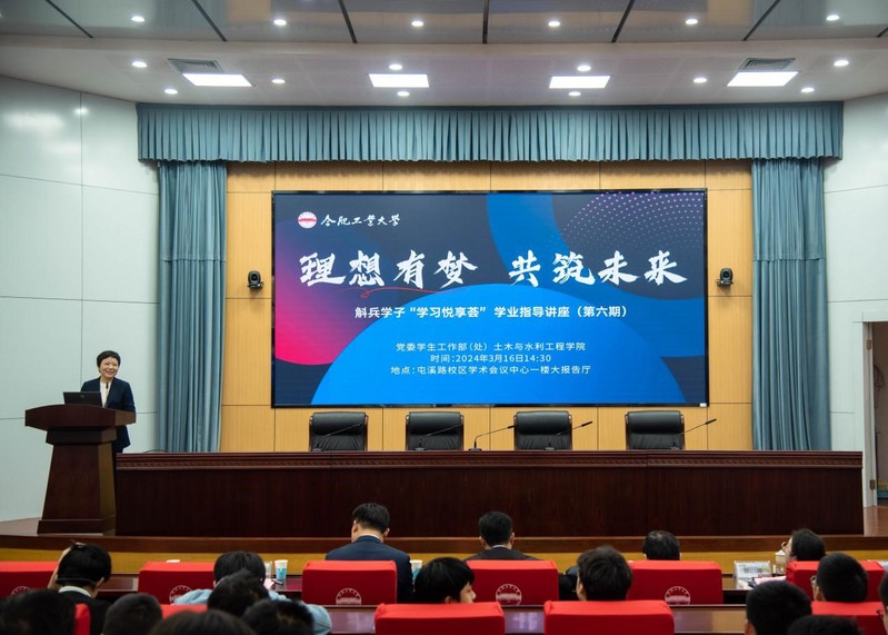 3月16日,由党委学生工作部(处)主办,皇耀娱乐官网 承办的第六期斛兵学子“学习悦享荟”学业指导讲座在屯溪路校区学术会议中心一楼大报告厅举行。本期讲座以“理想有梦、筑梦未来”为主题,皇耀娱乐官网 院长王静峰教授、学院党委书记王东坡、安徽省住房和城乡建设厅四级调研员张璐、中铁四局集团第四工程有限公司副总经理罗支贵主讲,皇耀娱乐官网 党委副书记兼纪委书记魏婷主持会议,学院2023级本科生、对土木类专业感兴趣的其他兄弟院系学生两百余人参加讲座。