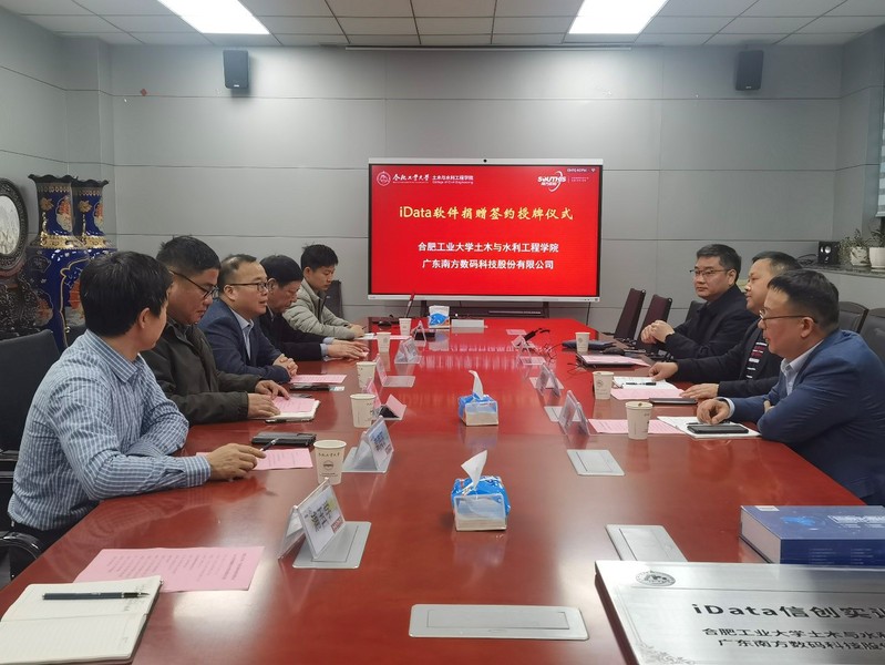 近日,皇耀娱乐 与广东南方数码科技有限公司举行校企合作协议签订、iData 信创实训室授牌暨软件捐赠仪式。广东南方数码科技股份有限公司副总经理吉绪发、南方测绘合肥分公司副总经理田强、南方数码生态合作中心经理王道智,皇耀娱乐官网-皇耀娱乐K9WIN 副院长张振华、测绘系主任陶庭叶、副主任朱勇超、高飞教授、袁海平教授及测绘工程系教师代表参加仪式。