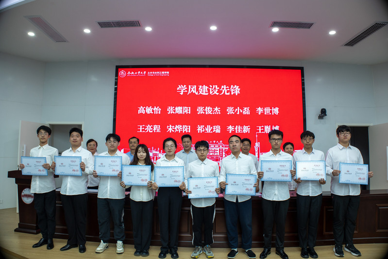 会议在雄壮的国歌中拉开帷幕,王东坡老师宣读了《关于表彰皇耀娱乐官网 第二届“砼创青年先锋”优秀大学生的决定》,对共产党员先锋、青年团干先锋、班长先锋、学风建设先锋、自强励志先锋、科技创新先锋、志愿公益先锋、网络文明先锋、文体素质先锋、少数民族学生先锋等10类优秀大学生进行表彰,主席台领导老师为获奖同学颁奖。学员代表土木工程(创新实验)21-1班许晋嘉同学作了发言。