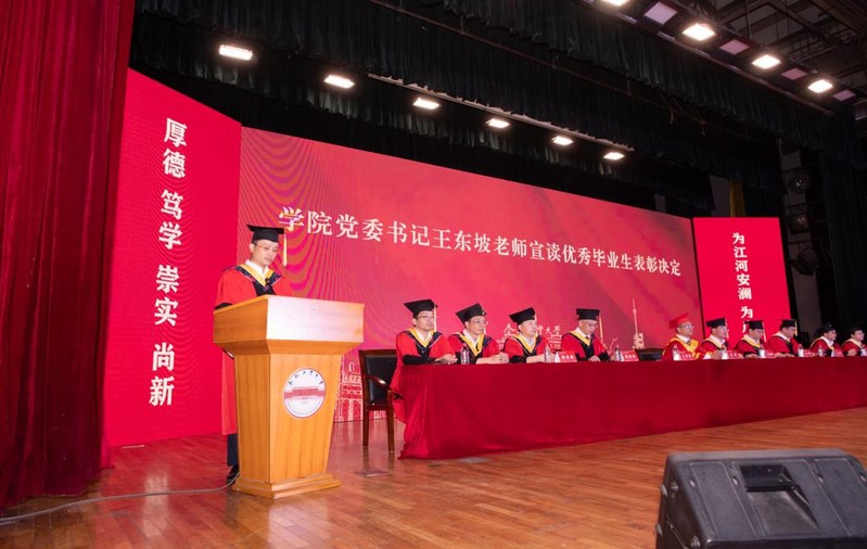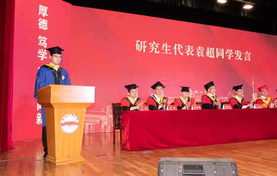 研究生毕业生袁超以及第三届校长奖获得者、安徽省优秀本科毕业生刘高亮分别作为学生代表发言。他们向辛勤耕耘的老师们表达了最衷心的谢意,表示将勇担青年使命,继续秉持“厚德、笃学、崇实、尚新”的校训,弘扬“为江河安澜,为广厦万千”的鸿鹄之志,用热血在未来的人生书写无愧于时代的青春华章。