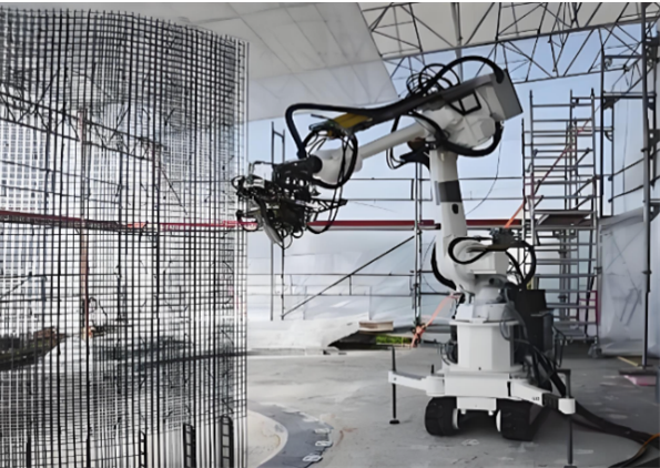 皇耀娱乐 参与研制开发的全自动钢筋绑扎机作业中