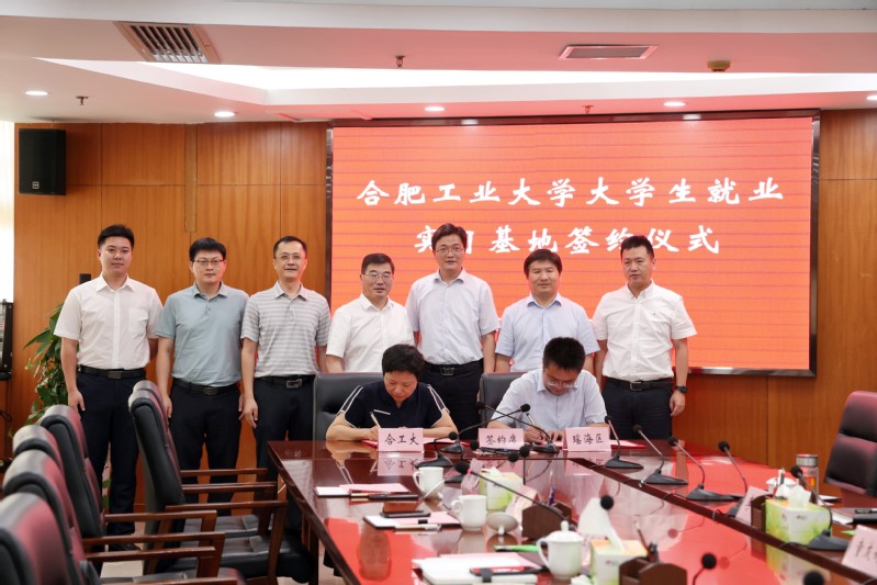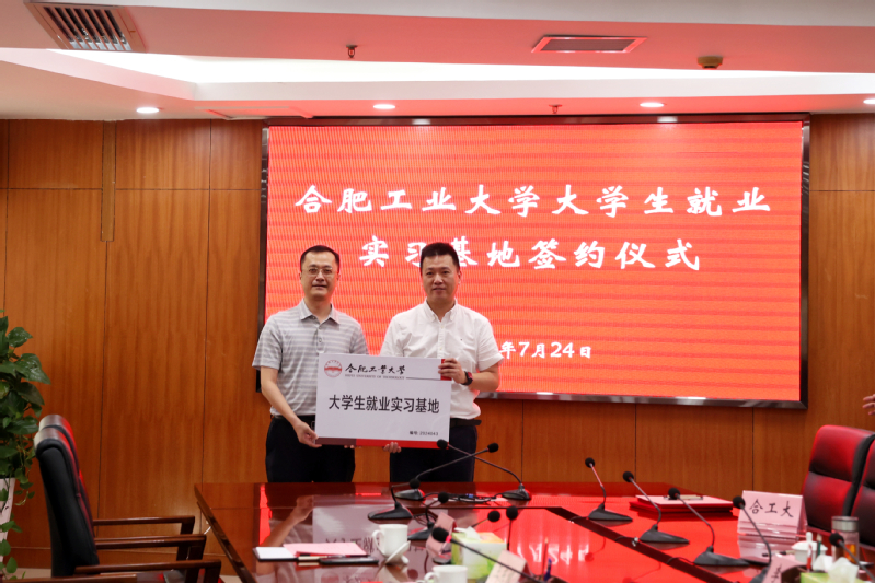 会上,双方领导在与会人员的共同见证下为“合肥工业大学大学生就业实习基地”揭牌,签署《合肥工业大学大学生就业实习基地协议书》并合影留念。