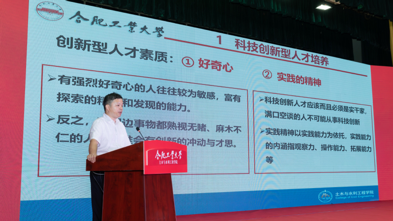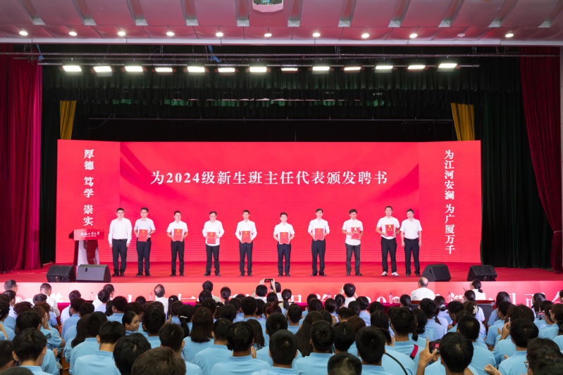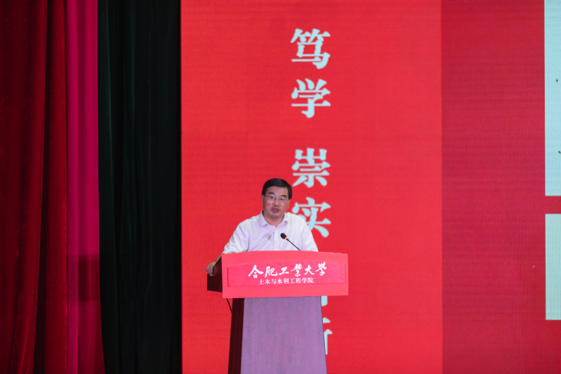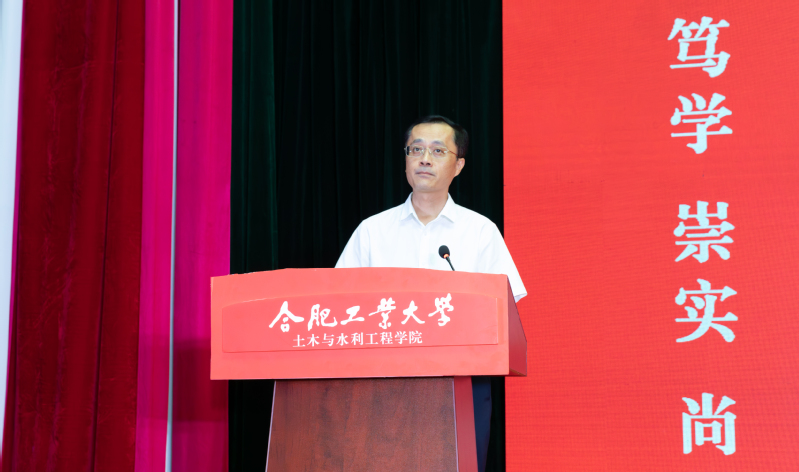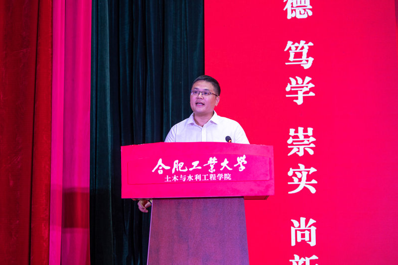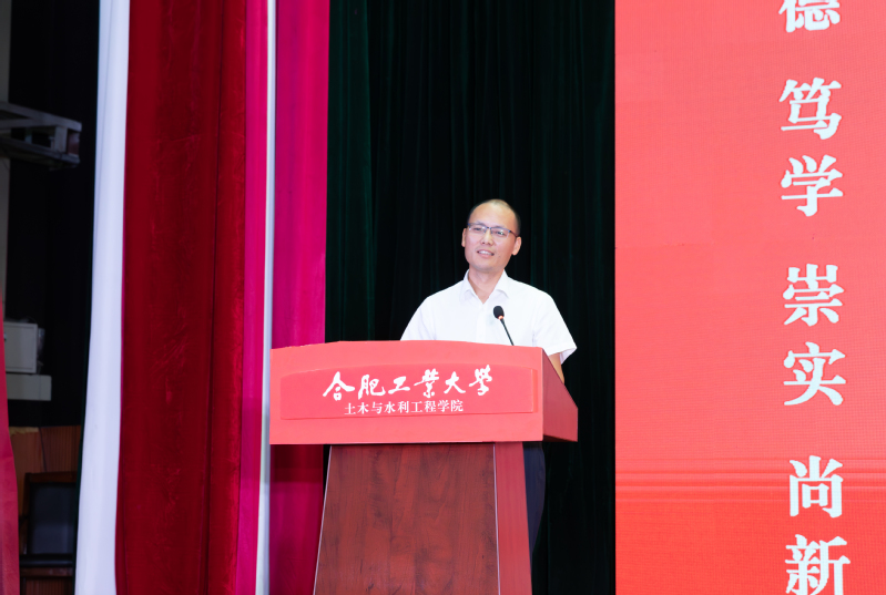学院党委书记王东坡宣读《皇耀娱乐官网-皇耀娱乐K9WIN 2024级本科生班主任聘任决定(合肥校区)》,副院长王昌建、高鹏为本科生班主任代表颁发了聘书。会上,学院本科生行业导师代表、优秀校友代表,中铁四局钢结构建筑公司总工程师曹晗发表讲话。他以幽默风趣的话语回顾了自己在工大的学习生活经历,向新生们分享了行业发展的前沿动态,并给出职业规划的宝贵建议,鼓励大家志存高远,脚踏实地,热爱祖国、热爱老师、热爱同学,为成为一名优秀的新时代土木人不懈努力。