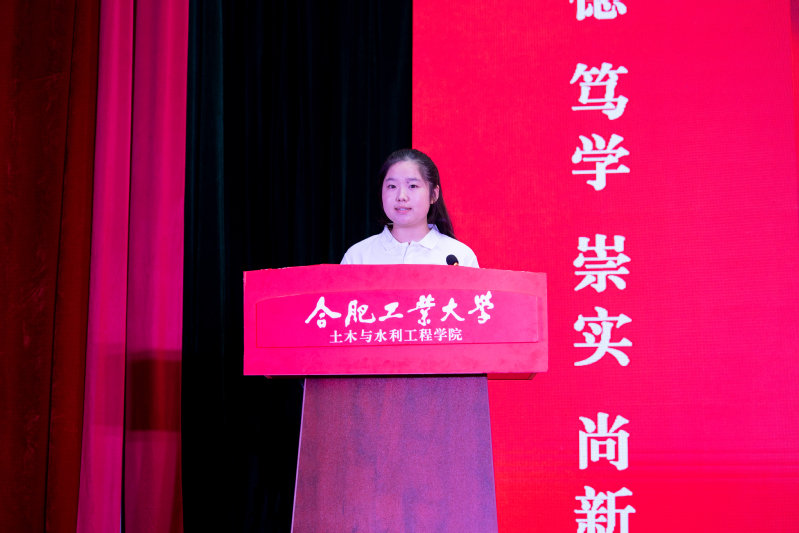 研究生新生代表徐颖同学、合肥校区本科生新生代表杨精昱同学以及宣城校区本科生新生代表许彭辉同学分别发言。他们畅谈了对未来学习生活的憧憬与规划,立志坚定理想信念、涵养爱国情怀,秉持工大校训,努力成为德才兼备、品学兼优的工大学子。