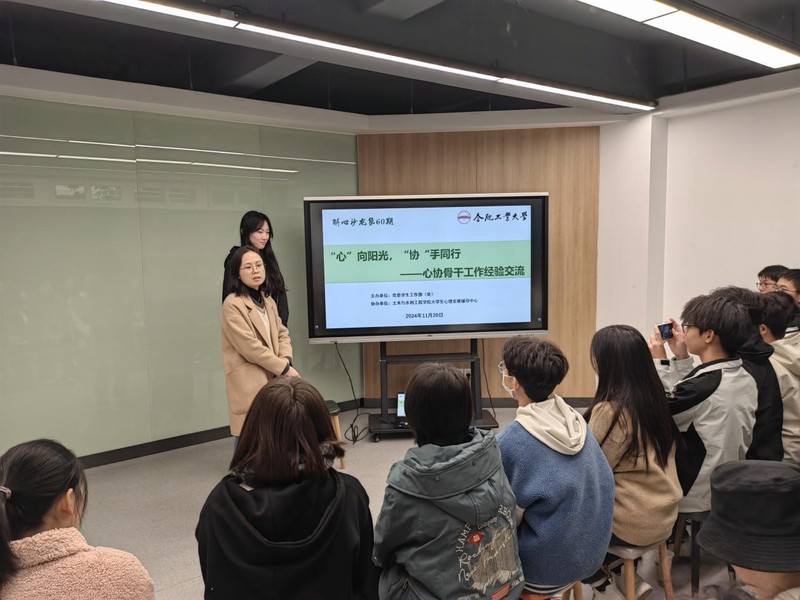 为提高学院大学生心理协会队伍工作能力,拓展朋辈心理工作思路,加强心协成员间的工作交流与互助,11月20日下午学院心理协会组织开展了“‘心’向阳光,‘协’手同行”心协骨干工作交流沙龙活动。心理协会指导老师胡倩倩出席会议,全体心协成员参加会议。