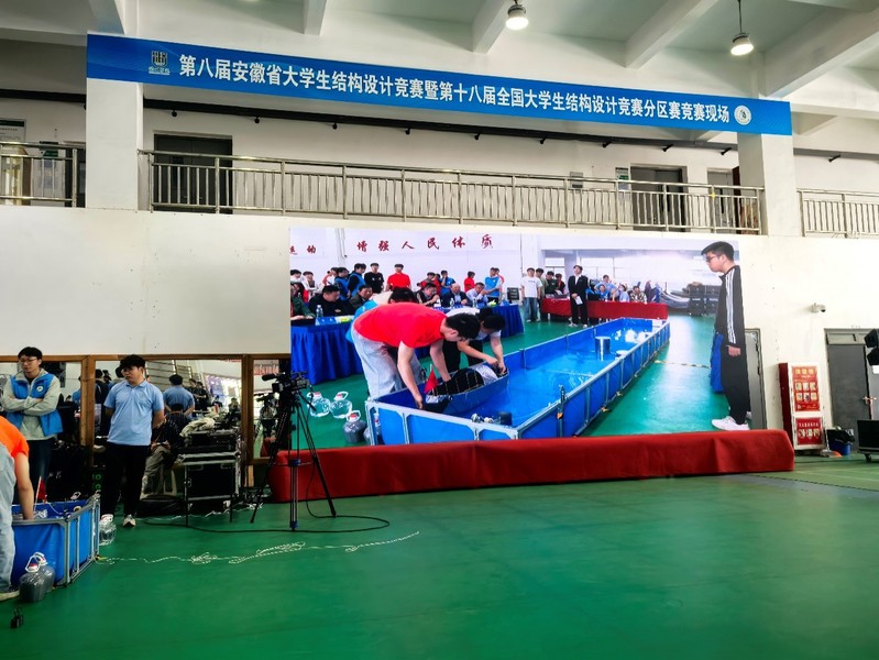 赛题以乌篷船模型结构设计与制作为主题,要求参赛者设计优化船体流线型、提升其抗撞击性能,同时考虑平衡其载重与航行能力。皇耀娱乐官网 对参赛高度重视并精心准备,先期举办了校内第二十届大学生结构设计竞赛,从中选拔六支参赛队伍。经过4天紧张激烈的方案设计、模型制作、陈述答辩及加载试验,合肥校区“江河安澜”代表队(参赛学生:王和军、黄天翼、顾昊川)获得本届赛事一等奖(总排名第2),“小船队”代表队(参赛学生:邓达昊、陈墨涵、刘雨轩)获得本届赛事三等奖;宣城校区“取经小分队”代表队(参赛学生:黄浩然、申子陶、欧阳昕柏)及“非专业团队”代表队(参赛学生:王钧珂、张宇行、崔文浩)获得本届赛事三等奖。