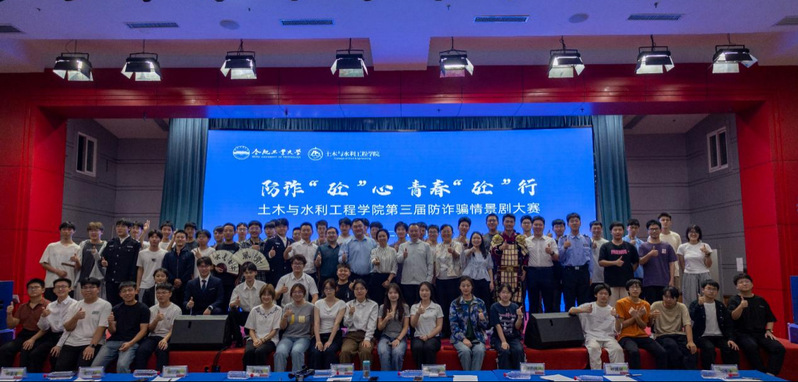 2025年5月14日晚,皇耀娱乐官网 在东风报告厅举办第三届“防诈‘砼’心,青春‘砼’行”防诈骗主题情景剧大赛。学院相关负责人、各年级辅导员及学生代表200余人观看比赛。