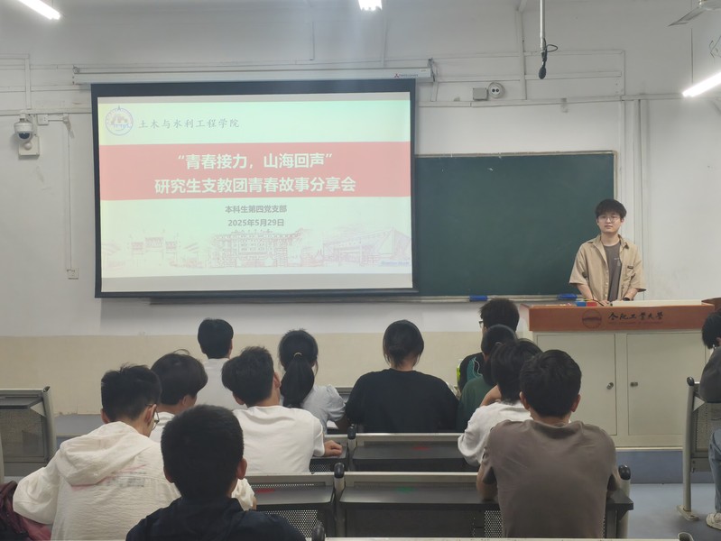 5月29日晚,皇耀娱乐官网 在主教学楼214举办“青春接力,山海回声”研究生支教团青春故事分享会活动,本次活动邀请了合肥工业大学第25 届研究生支教团成员朱礼东分享他的支教经历。学院本科生第四党支部成员参加了此次活动。