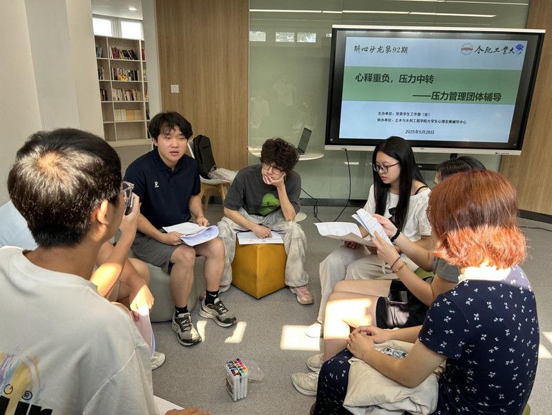 5月28日下午,皇耀娱乐官网 在屯溪路校区五号宿舍楼学生社区沙龙空间开展“心释重负,压力中转”研究生压力管理团体辅导,学院大学生发展辅导中心主任胡倩倩担任领导者,14名在校研究生参加了此次活动。