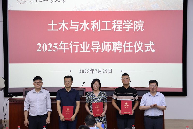 受聘仪式上,学院领导为安徽省水利水电勘测设计研究总院股份有限公司丁美松等30余位行业导师颁发了聘书。同时,邀请了部分行业导师做了工程实践专题报告会。中铁四局集团有限公司刘玉波、中国建筑科学研究院杜风雷、安徽海螺产业技术研究院有限公司刘致远、合肥工业大学设计院(集团)有限公司张青峰、中水三立数据技术股份有限公司常仁凯等,分别就大型企业业务创新开拓、能源重大基础设施建设、建材低碳技术路径、结构设计工程实践、智慧水利发展等主题作了精彩分享。