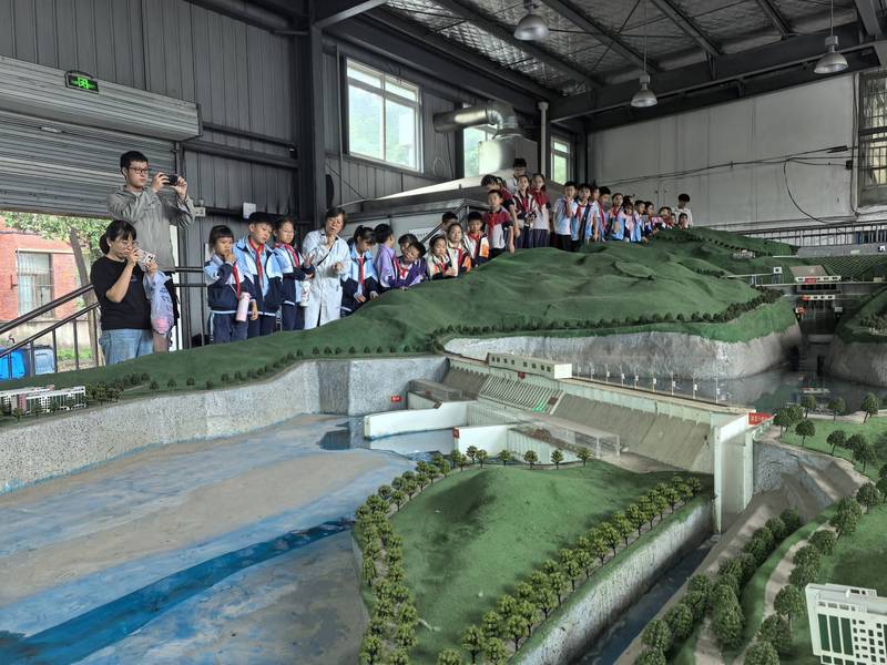 科普开放期间,各活动面向合肥市中小学生和社会公众开放。9月24日,合肥市淝河小学30余名“包小蓝”同学走进了实验中心。在结构实验室,武学周、赵春风老师为小学生们先后讲解了“1200T大型加载科学实验装置”,演示了“混凝土梁的破坏实验”。从中,小同学们第一次真切地感知房屋在地震作用下的破坏基本知识。在水力(利)学实验室小学生们参观了学院大型三级水利枢纽模型,赵静老师为同学们做了演示了三级水利枢纽的蓄水、发电等功能并进行了深入浅出的细致介绍,小同学们积极参与到活动中,对水利工程及其利用不时提问。在智能微馆,机械臂的精准操作与大疆无人机的展示引来小朋友们的阵阵惊叹,于天昊老师的详细讲解让大家切身感受到智能科技的高效与魅力,体会到智能建造发展的重要影响。这种寓教于乐的方式不仅拓宽了青少年的科学视野,更在孩子们心中播下了探索科学的种子。