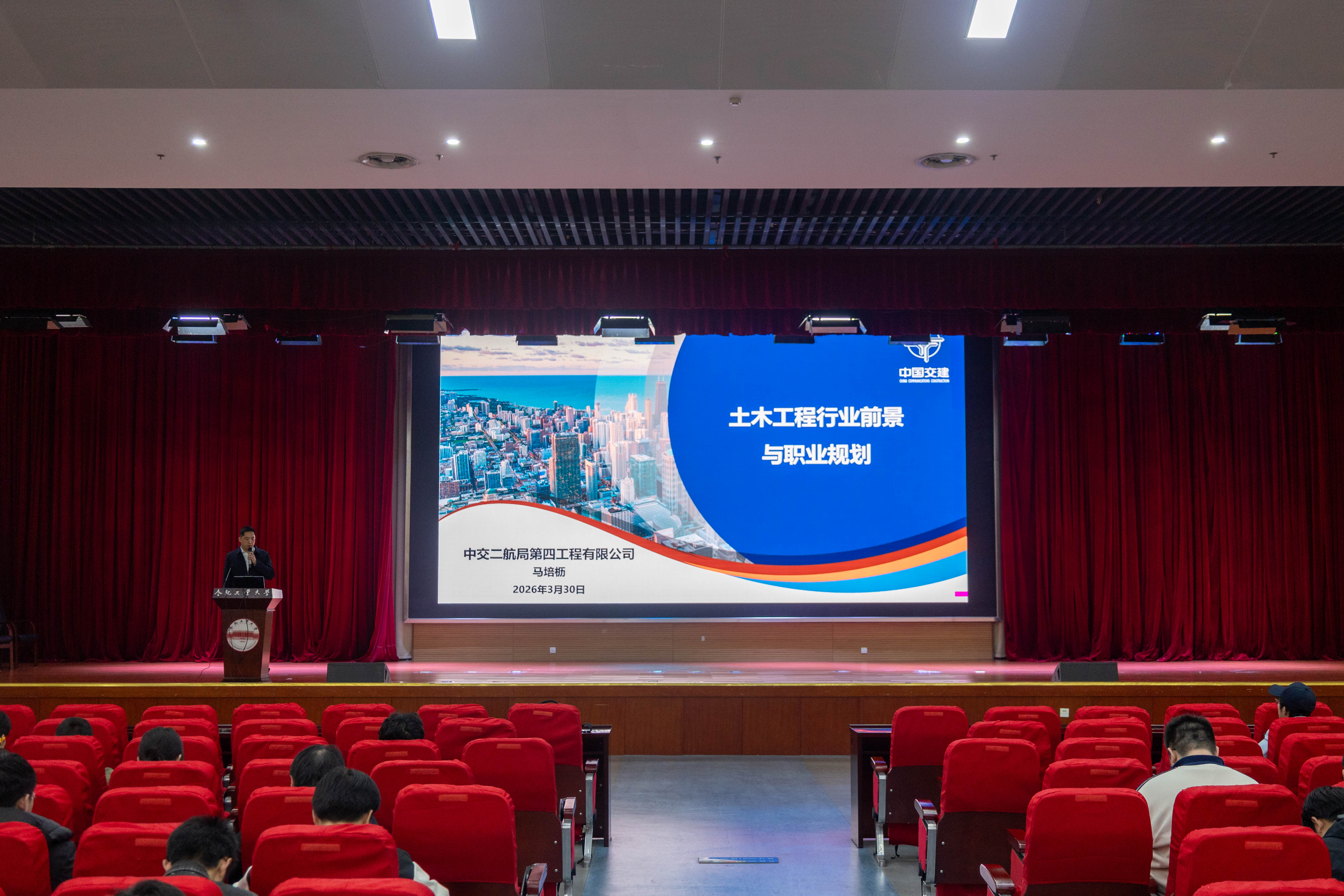 报告会上,马培枥校友围绕“土木工程行业前景与职业规划”主题,结合十余年一线从业经验,立足国家“十五五”时期基建发展新格局,系统阐述了土木工程行业的前景与转型方向,他从传统基建、绿色基建、水利基建、数字基建四大核心赛道切入,梳理行业重点工程方向与发展逻辑,为同学们勾勒出行业发展的清晰图景。