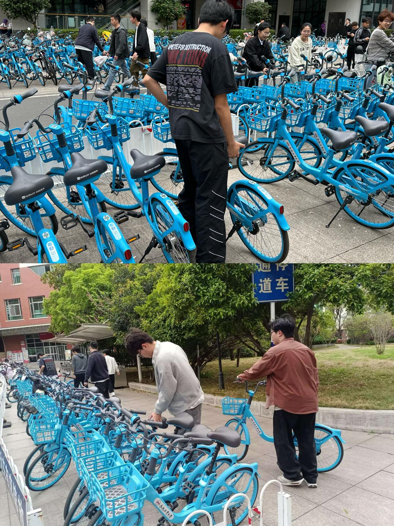 活动中,学员们分工协作,将共享单车统一抬入停车线内,确保车头朝向一致;同时清理车筐垃圾、扶正倒地单车,对乱停同学轻声礼貌劝导。大家以微服务回应师生需求,用实干优化校园公共空间。